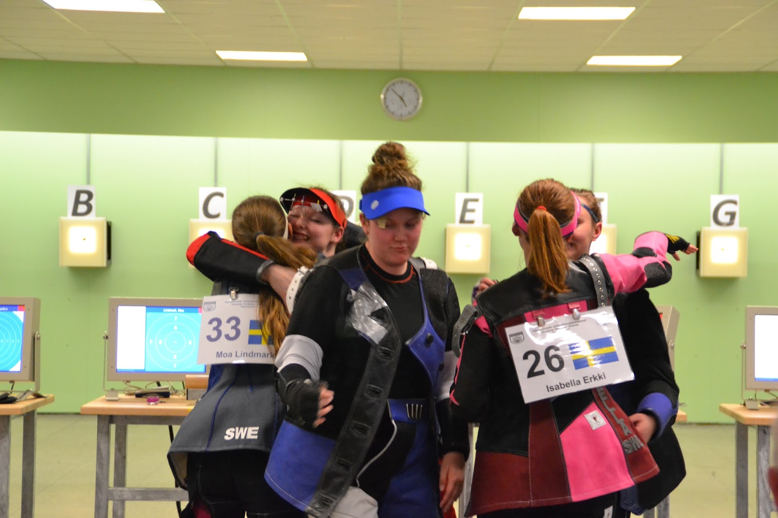 När klockan var elva så drog nästa luftlag igång. Representerade från skyttegym var då Linnea och Jessica. Jessica sköt personbästa på 401,4 med två 10,9 i rad!! Så nu blir det glass för henne! GRATTIS